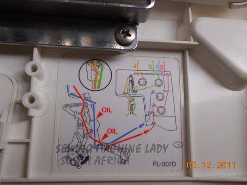 COLOUR CODED THREADING DIAGRAM INSIDE MACHINE