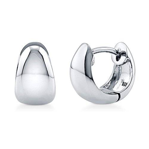 BERRICLE Rhodium Plated Sterling Silver Dome Fashion Hoop Huggie Earrings 0.4"