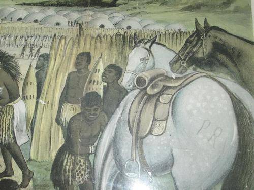 BESOEK VAN PIET RETIEF EN SY ESKORT AAN DINGAAN FRAMED PRINT WITH GLASS SIZE 78CMX61.5CM