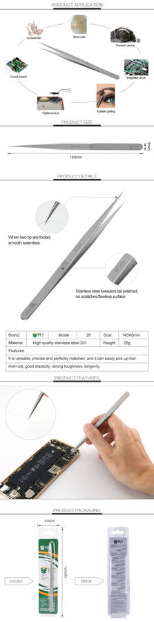 BEST BST-26 High-end Precision Tweezers Anti-skid Plus Hard High Toughness Tip Tweezers Straight Tweezers Features :