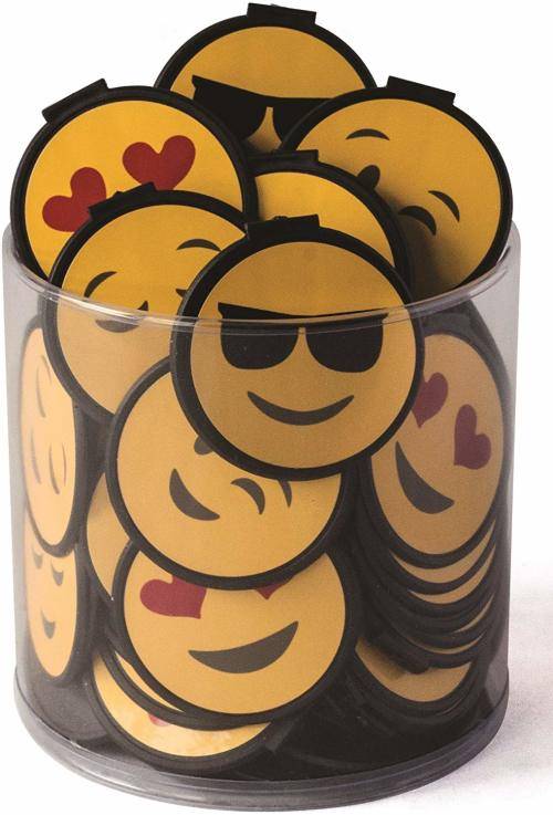 Emoji Smiley Face BOOKMARKS! (Set of 75) Each 1.5” Circle plastic bookmark easily clips over the page to securely mark your place. Our for teens, adults & kids are a sure fire way to encourage school spirit and reading! Ideal for student incentives, summer reading programs, vacation bible school awards, reading rewards, student prizes, teacher give-a-ways and classroom rewards.