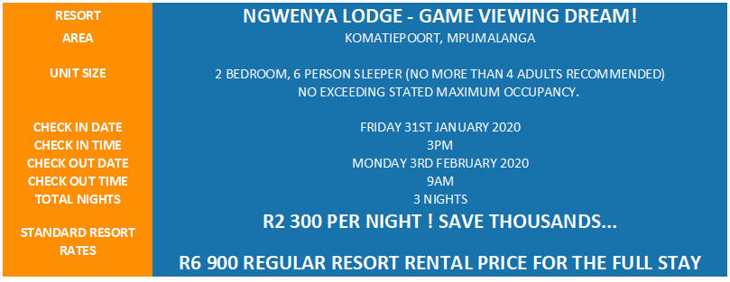 Ngwenya Lodge is affiliated to RCI and has maintained Gold Crown Status year-on-year. Providing guests with the best possible holiday accommodation, as well as the perfect setting to accumulate everlasting holiday memories, is at the centre of Ngwenya's service offering. This goal is further highlighted by the Tourism Grading Council of South Africa which awards quality in tourism across the country. Ngwenya Lodge is graded a four star rating in the self-catering – shared vacation category; a prestigious accolade.