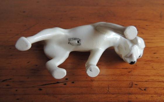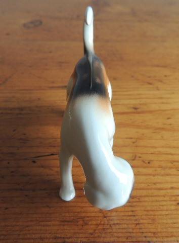 He's delightful and in great condition with the smallest bit of crazing as seen in the photos. The length is 8.5cm and height is 6.5cm. Please note that I have listed four foxhounds in various positions.