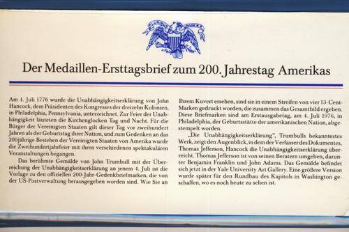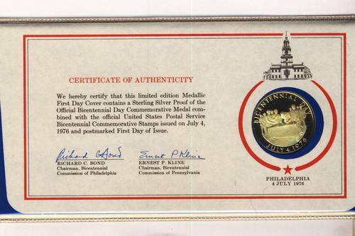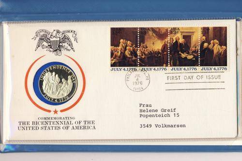 Bicentennial of the United States of America - silver proof coin on 4 July 1976 first day cover