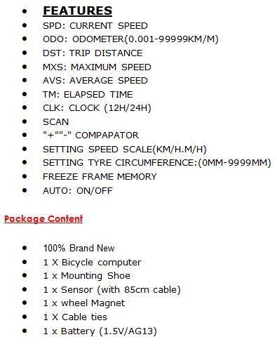 BICYCLE COMPUTER ODOMETER SPEEDOMETER
