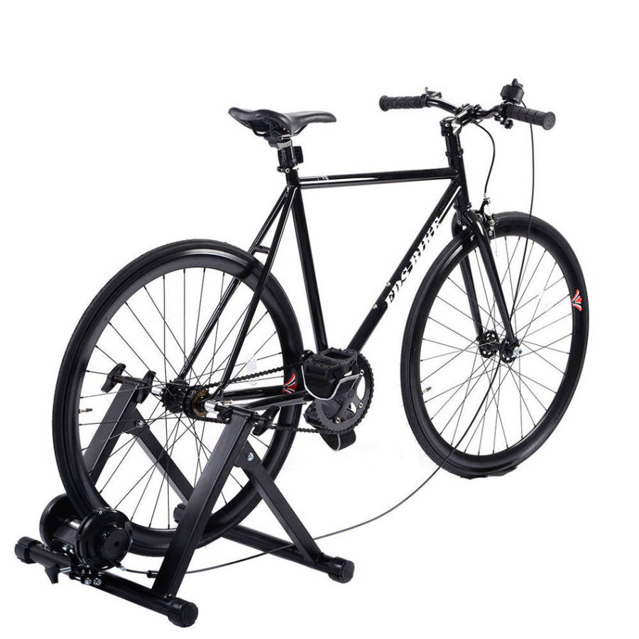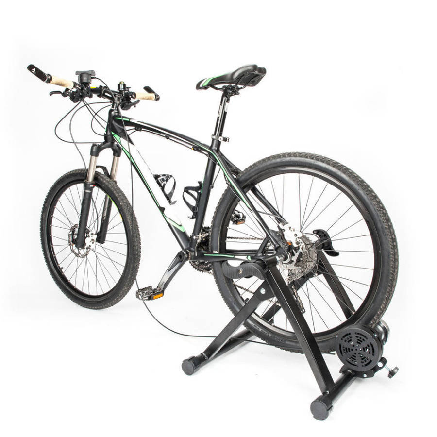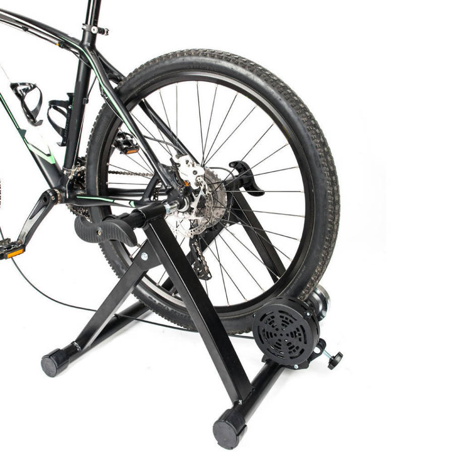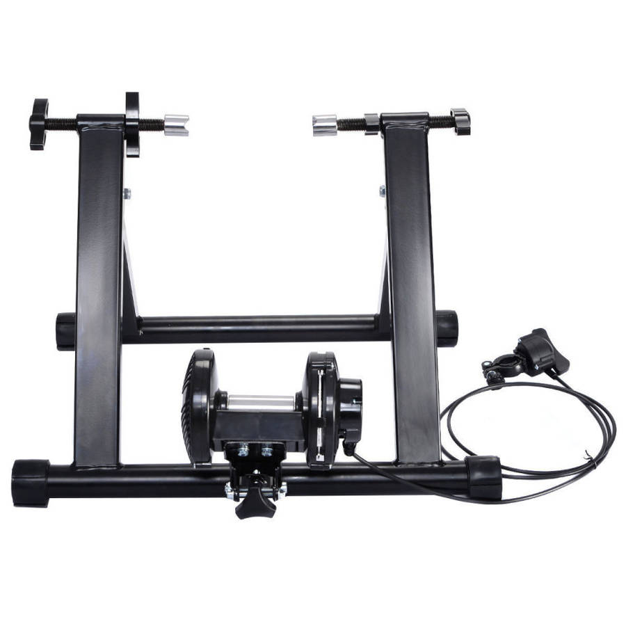 Whether it's too cold, too wet, or too dark out on the roads, or you simply don't feel like going for an outdoor ride, with the Indoor Bicycle Trainer, you can stay fit and enjoy bike training in your home. Smooth, quiet magnetic resistance features single-adjustment, progressive resistance which increases along with the speed, and double adjustment centers the bike in the trainer for a steady ride.
