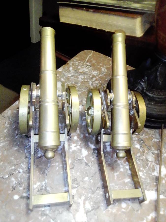 Bid per one. There are two Clean heavy Impressive solid brass Display Canon's. Size Each: 230mm long x 75mm Wide. Weight 1.1kg each. Sold as good used second hand.