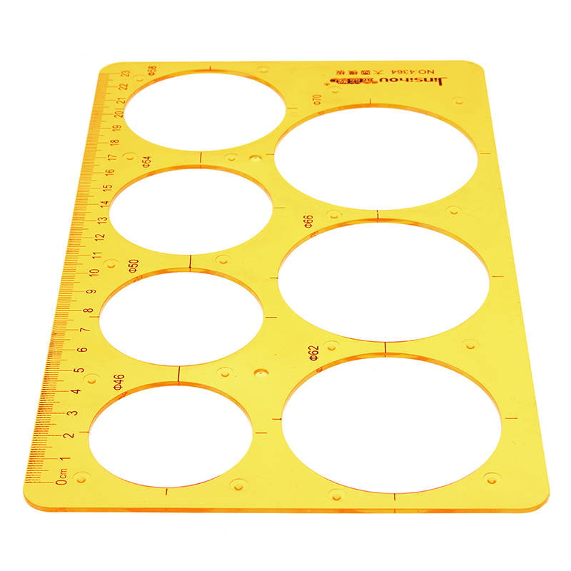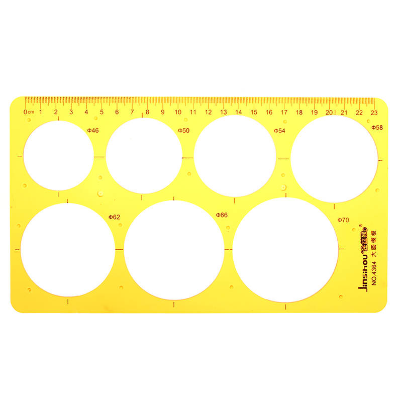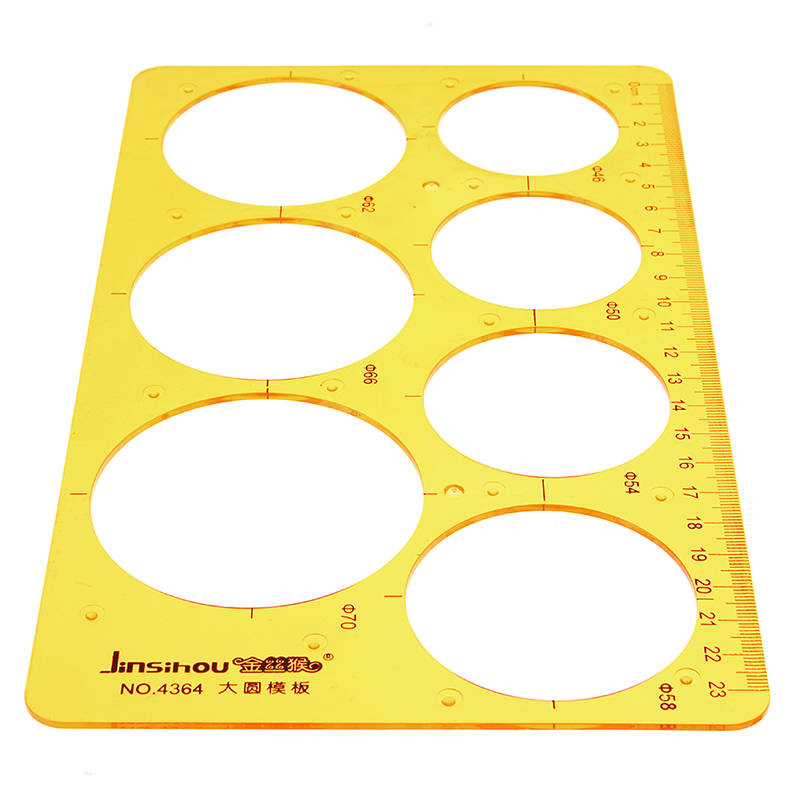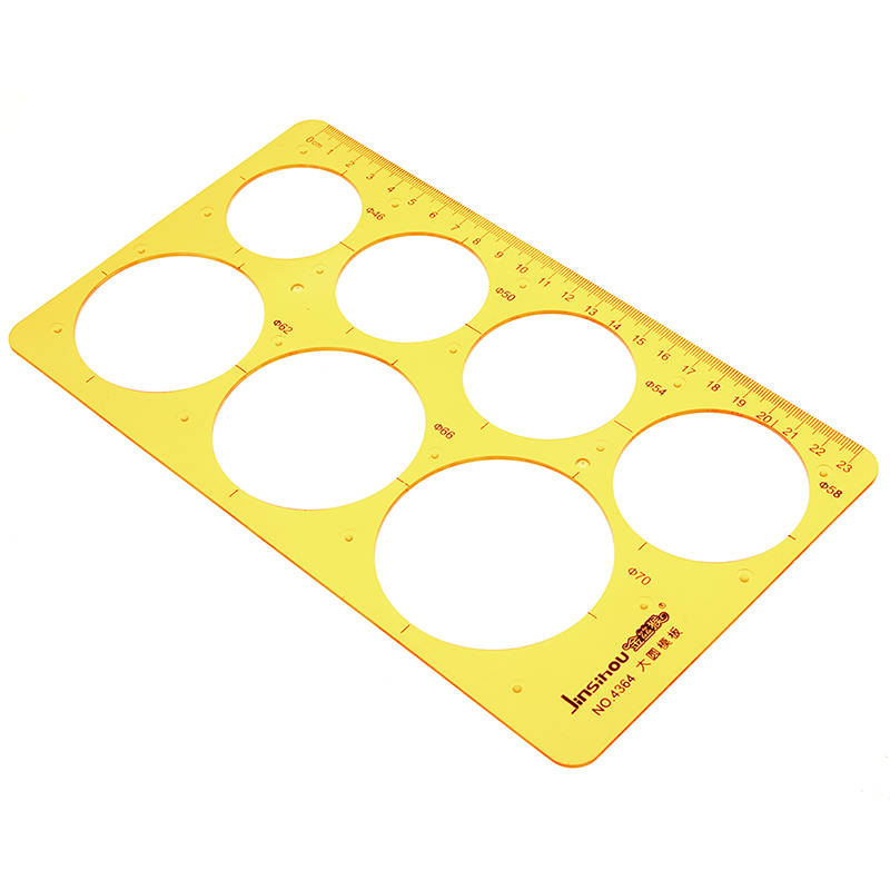 Specification: Material: K Plastic (Soft Plastic) Type: Circle, Circular Length: 25cm Width: 14.4cm Features: - Made from transparent, orange plastic. The rate of transparency allows you to see the drawing below template for easy positioning. - Assorted sizes of 7 different big circles, from 46mm to 70mm. - The templates eliminate the time consuming job of drawing outlines with line dividers - Easy for decoration art design, fractional measurement, in school, office and every drawing templates. Package Included: 1 x Geometric Figure Template Drawing Ruler