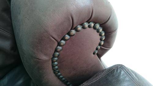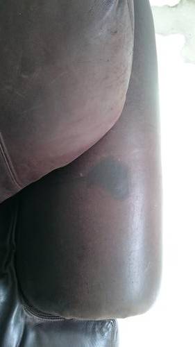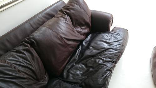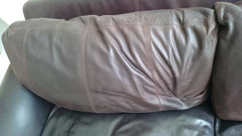 This is a second hand item- and there are some damage to the leather as previous owner had dogs- but a little TLC and it would look as good as new. It's incredibly comfy- and if you want you can even add more stuffing to make it even comfier!