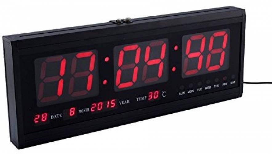 Clock Size: 480mm(L) x 185mm(H) x 50 mm(W) or 18.9'' (L) X 7.3'' (H) X 2'' (W) Digit Size: 3-inch tall time digits, 0.5 inch tall calendar & temperature digits Power Input: AC100v-240v 50/60Hz