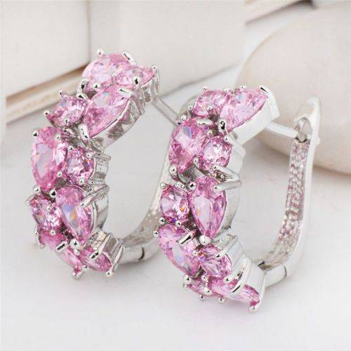 Big Heart Pink Crystal Hoop Earrings Silver Dangle Women Cute Earrings