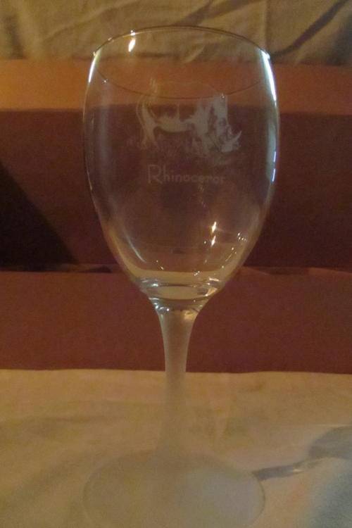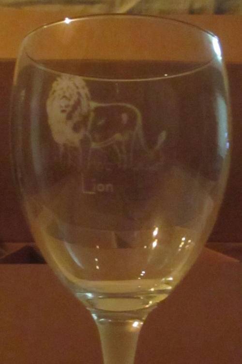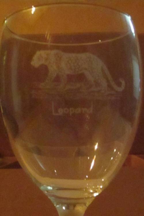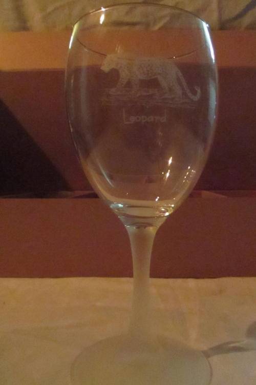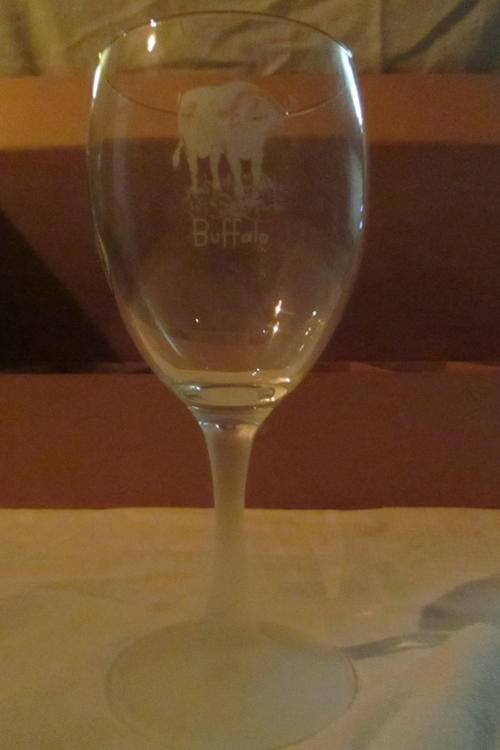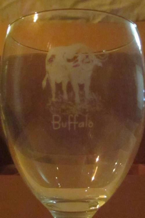 clear tops and picture of animal sandblasted in white, there is a Lion, Leopard, Kudu, Buffolo, Rhino and Elephant picture