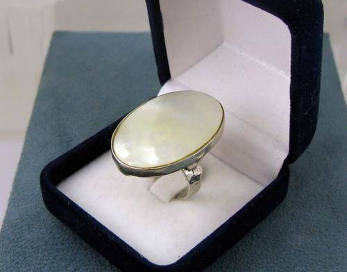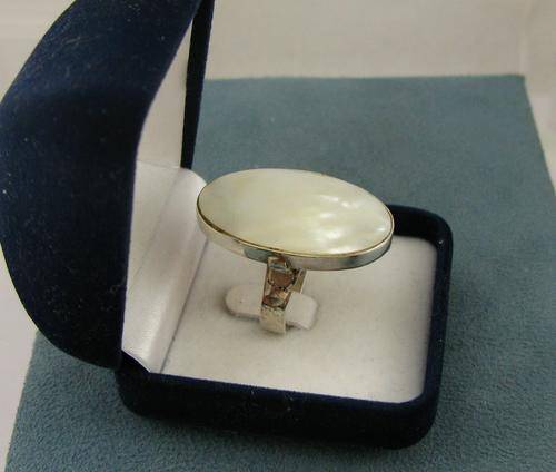 Big Vintage Sterling Silver Ring with Mother of Pearl.