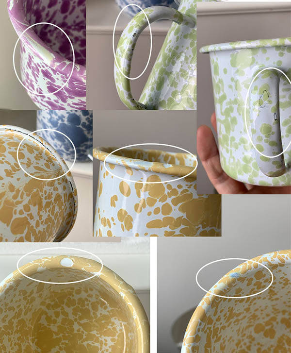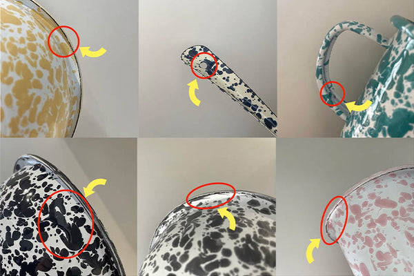 Since our enamel products are all handmade, please understand they may have the following conditions but none of them will affect the use of the products.
