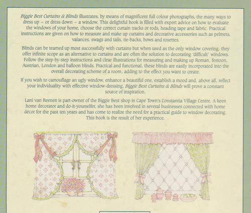 Biggie Best Curtains & Blinds By Lani Van Reenen, published in 1990, 72 pages, hardcover, slight scuffing etc otherwise all good.