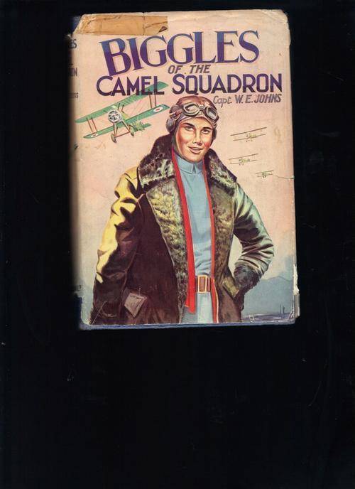 Biggles of the Camel Squadron, By Capt. W.E. Johns, Publ. Dean & Son, no date, wear & tear on the dust wrapper, inscriptions that is lined dead with pen, otherwise in good condition, 182 pages,