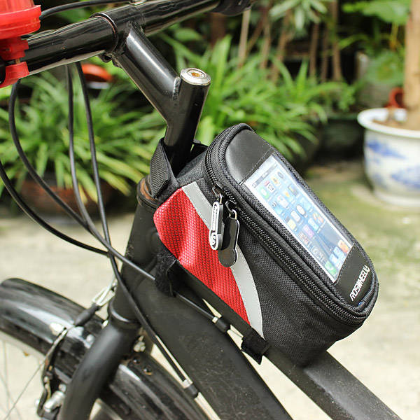 Bike Bicycle Mountain Saddle Bags Touch Screen Mobile Phone Bag Specifications: Product:Touch screen mobile phone bag Material:600D polyester&PU Weight:200g Size:16x8.5x7.5cm Suit for:touch screen mobile phone Color:red,blue,sliver Features: Precise touch & super sensitive Velcro fixed ribbon reinforcement applied in a variety of models. The back of mobile phone bag and the whole car pack filled PE cotton. After open type U double zipper, mobile phone earphone line can coveniently passes through and also convenient for fetching articles. Package included: 1 x Touch screen mobile phone bag