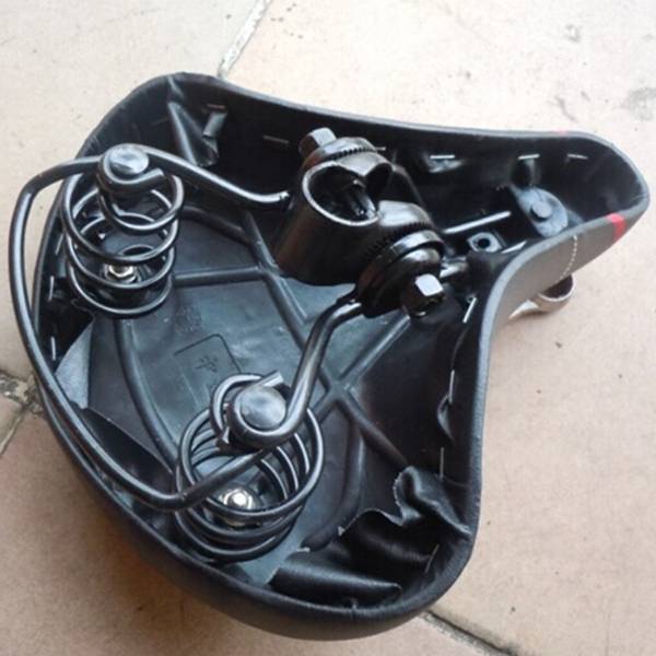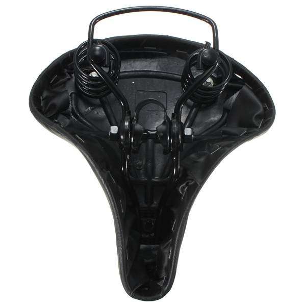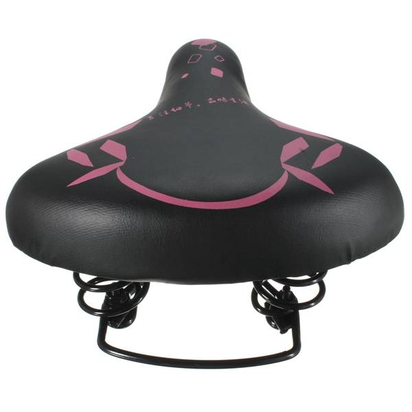 Design Extra Large Soft Comfortable Wide Large Bicycle Saddle Spring Seat Features: Fashion and streamlined bicycle saddle design Extra wide, anatomical seat design Thick elastic comfortable and breathable Easy to wash Practical reliable and durable, Best choice for riding essentials Specification: Material: Plastic + PPV Leather + Metal Color: Black(Pattern Sent At Random) Size: 22 x 20 CM(L x W) Package Included: 1 x Bike Saddle