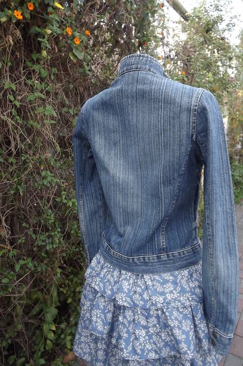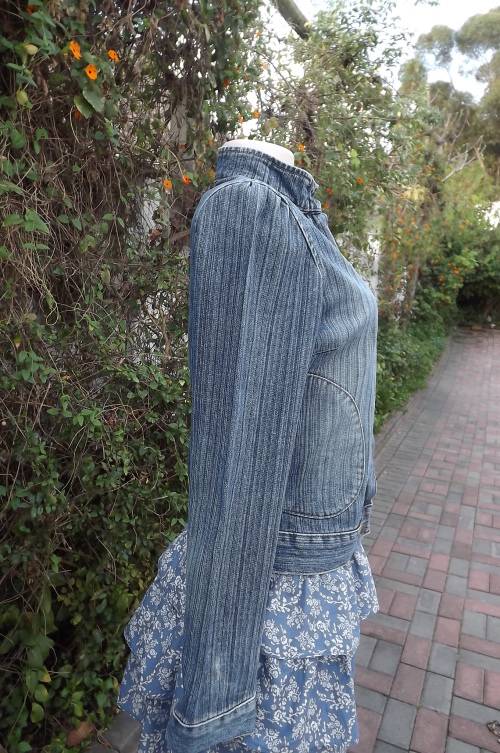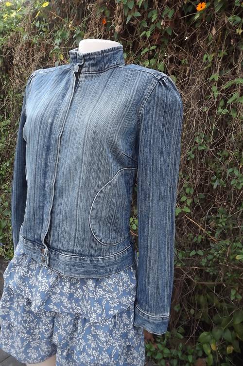 Biker style denim cropped jacket by "Old Navy"in 100% cotton.Size 32/8.Two side pockets