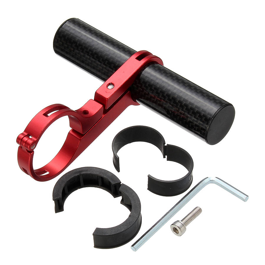 Package weight: 0.06 kg Specification: Material: Aluminum Alloy + Carbon Fiber Color: Red / Blue / Black Fixed the column diameter :22.2mm Features: 1. Suitable for mountain bike and other bicycles. 2. With wrench, it is easy to install on the bicycle. 3. Stiff and sturdy, it can be used for a long time. 4. Carbon fiber and aluminum alloy material, strong and durable. 5. Super light CNC Aluminium body with a carbon extender bar. 6. It can be used for bicycle lights, flashlights and stopwatch installation. 7. Used in bicycle fittings such as loading headlights spec, saves the handlebars. 8. Fits on to your bike handle bars to add extra storage space for your bike lights, GPS or phone etc. 9. Suitable for installation handlebar diameter 31.8mm (25.4 mm handlebar need to add gasket) Package included: 1 x Bicycle Handlebar Extender 1 x Hex wrench Notes: 1.Manual measuring, please allow 1 ~ 5 mm error,thank you. 2.Please leave us a message about your prefer color. 3.Due to the difference between different monitors, the picture may not reflect the actual color of the item. We guarantee the style is the same as shown in the picture.
