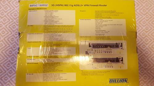 • Full spec: http://es.billion.com/product/3g/BiPAC7800GZ-3G-HSPA-ADSL2-Wireless-VPN-firewall-Router.html