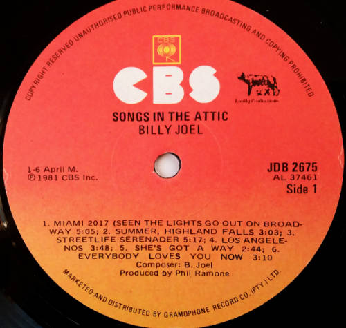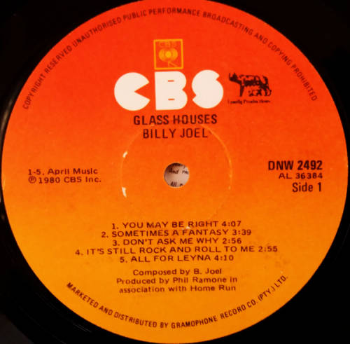 Billy Joel 3 vinyls LPS - Glass Houses (1980), Songs In The Attic (1981) AND The Nylon Curtain (1982)