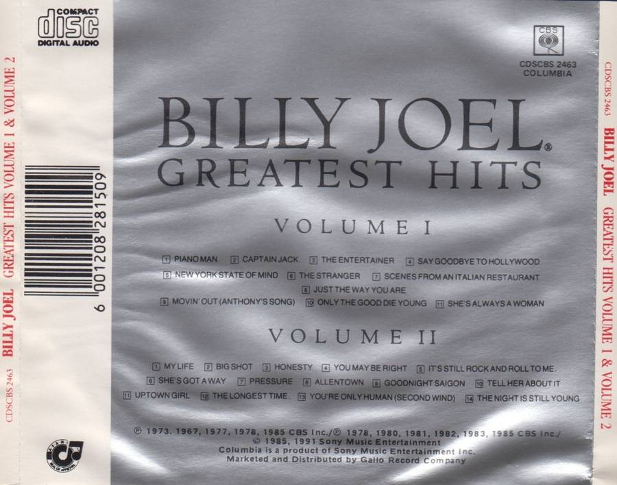 Billy Joel - Greatest Hits : Volume 1 & 2 (Double CD) [Front & back insert `wavy`]