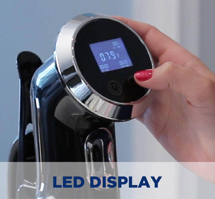 | Enjoy an easy to read LED display for temperature setting and reading | Easily adjust the temperature and time setting with the thumb wheel control. Quickly increase or decrease the temperature in one swift movement. | The Sous Vide Precisions Cooker clamps onto any size container up to 5 gallons and features a rubber grip that will securely stay in place throughout the entire cooking process. |