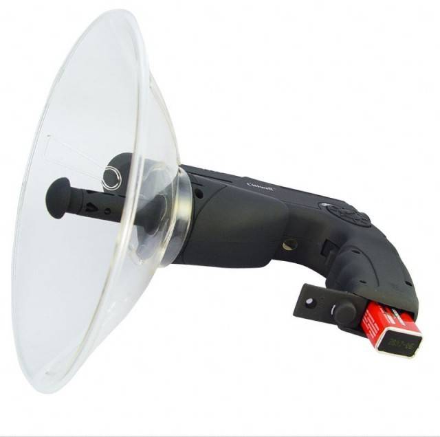 Spy device which acts as a Bionic Ear, letting you hear faint sounds up to 20~30 Meters away, and loud sounds at an incredible 100 Meters on the included comfortable and high quality Stereo Headphone. Added to this, there is a built in monocular which will let you see objects at up to x8 magnification, and a digital sound recorder to record the sounds you hear. You will even be getting a fine tuning frequency knob to adjust how wide the sound reception is, in order to focus in on one sound. This is a perfect spy gadget for nature lovers, law enforcement, or people just looking for a little fun.