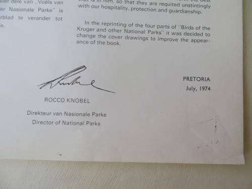 BIRDS OF THE KRUGER NATIONAL AND OTHER NATIONAL PARKS - VOL.1 - JULY 1974