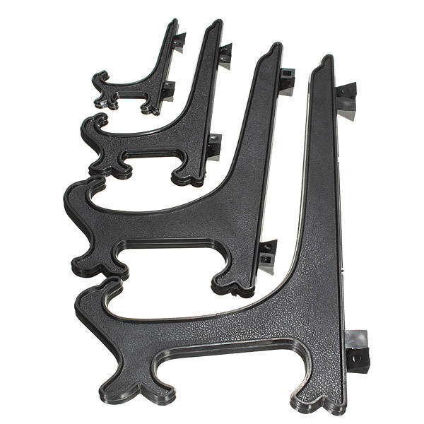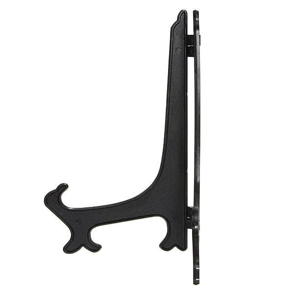 Description: Adjustable hinged decorative display stands/easels,The biggest selling point is that they do not need glue and screws, you can directly put your items placed up on it , not only put in place wherever you want, you can also adjust the width arbitrarily,Fashion exquisite elegance. Ideal for can be used for plates/pictures/knives/fossils/ammonites/minerals/books/trading cards/photos or just about anything else Features & details: Material: plastic Size: 3inch ,5inch,7inch,9inch Color: Black Package Included: 1 x Holder