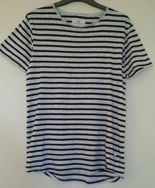 Black and grey striped T shirt by "Brunswick", curved hem longer at back great quality from Cotton On in Very good condition