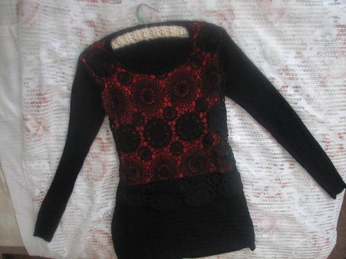 This gorgeous black and red dress is long sleeved and thigh-height. The material may feel a little heavy but the item self fits very snug and comfortable.