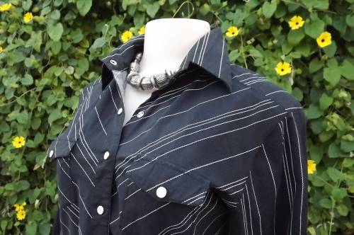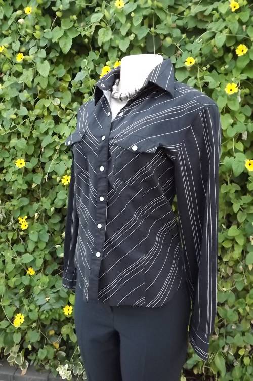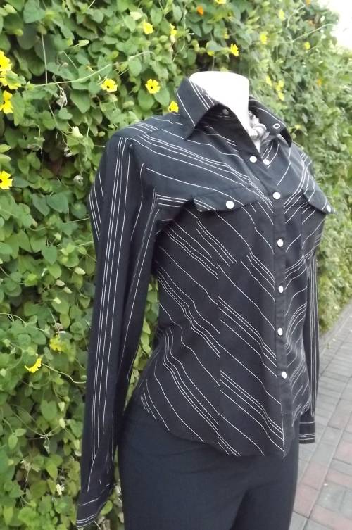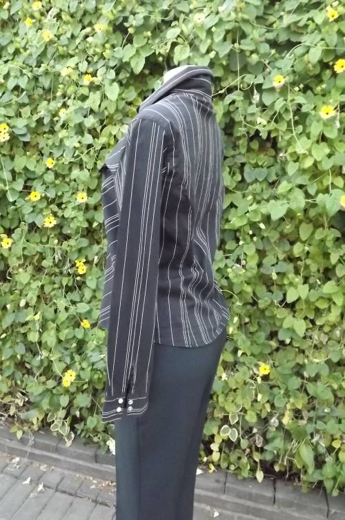 Black and white cotton stretch casual top by Insync size 36/12.Close on front with press buttons.Two small pockets on front - long cuffed sleeves.As new