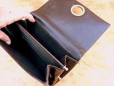 PLEASE NOTE THE UNUSUAL CHROME FITTING TO CLOSE THIS STYLISH BAG