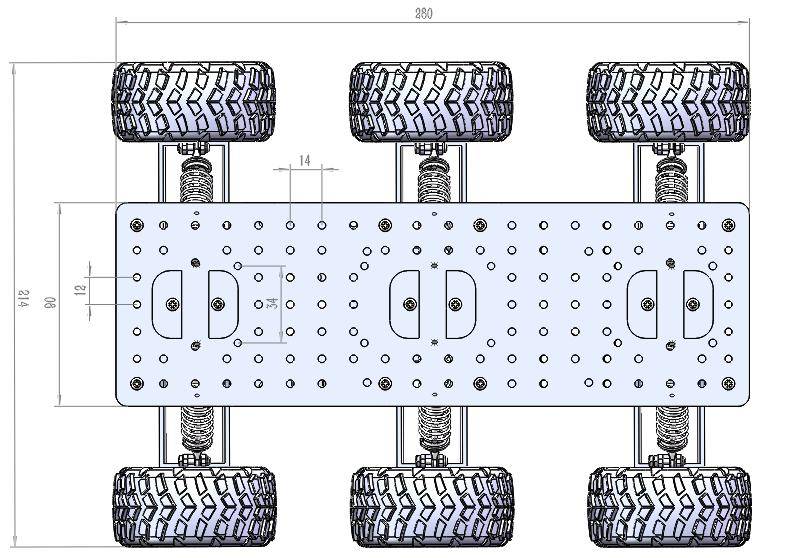 aYou can modify it as you like:The upper chassis adopts a 3mm mounting hole, and the lateral 12mm and vertical 14mm hole spacing can be used to install a wide variety of sensors. Or to extend other functions, such as installing a robot arm.