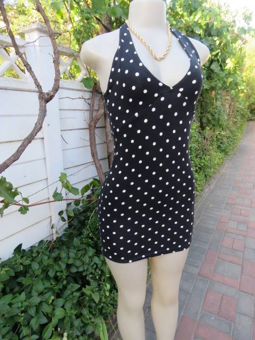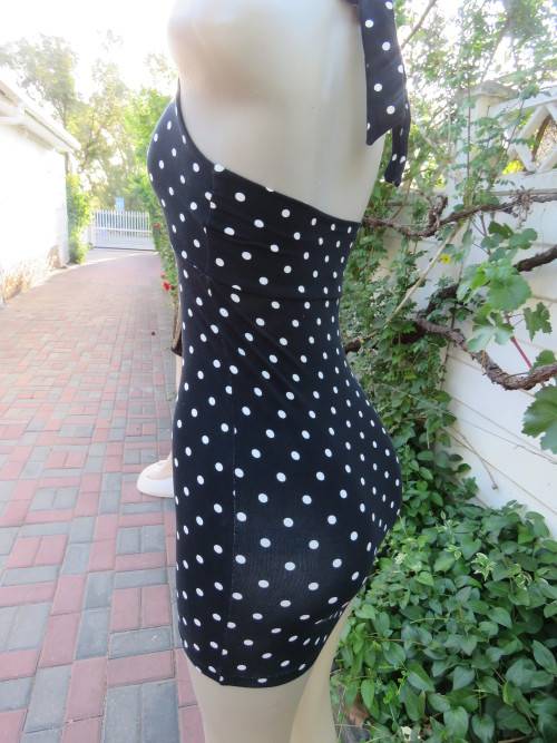 Black bodycon dress with white polka dots in stretch cotton.By 'FOREVER 21' in size 30/6.New cond.