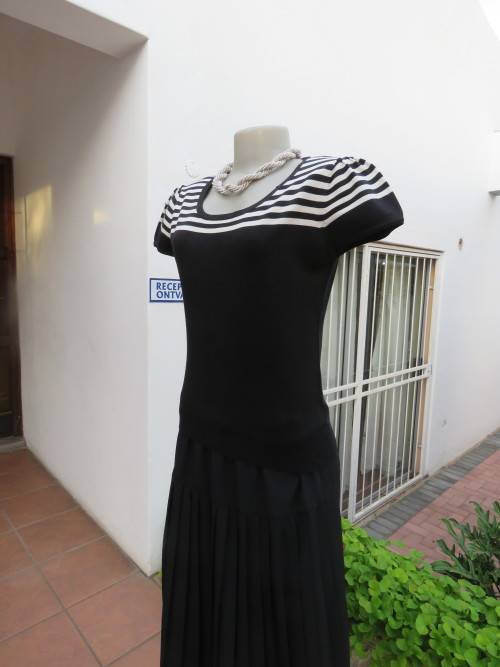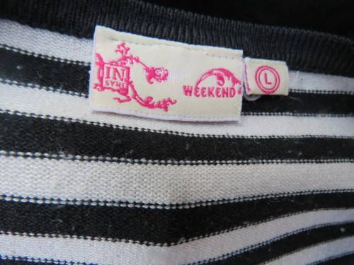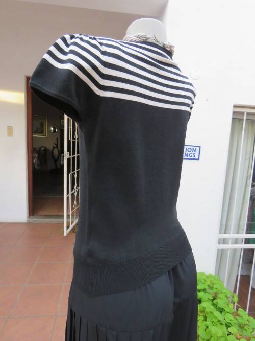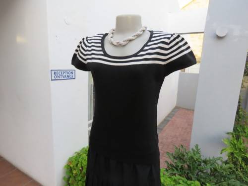 Black capped sleeve knitted top with black and white striped yoke by INSYNC in 34/10.Everyday wear.