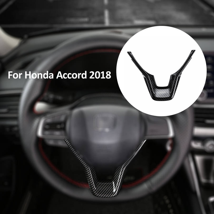 Specification: Color: Black Carbon Fiber Material: ABS Placement on vehicle: Interior Steering Wheel Fitment: For Honda Accord 2018 Gross Weight: Around 89g Features: 1. Decorate your car charming luxury vivid. 2. Easy installed and No modification needed, tape is at the back. Installation: Step 1 Please clean the area and eliminates the substance before mounting this product. Step 2 To check the installation area according to the vehicle with this product first and then release the back of tape paper (double-sided tape, a label) is removed Step 3 Products are equipped on the vehicle with exactly and use a clean cloth to press evenly is attached. Step 4 Products within 24 hours after installed, please avoid washing your car and touching the water. Tips: 1.Before installation, Please keep the surface clean and dry, no sand/dust. 2.Under 15 a, you can use a Hair dryer to warm the product and adhesive tapes up before installation.