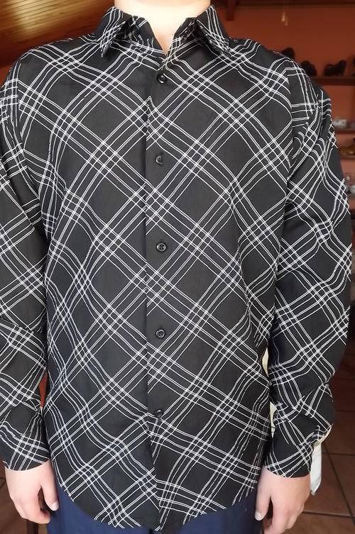 Black Checkered Silky Men's Shirt for 13 to 14 year old boy by Jabaroo - 100% Polyester - as new
