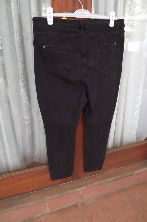 Black denim pants by DONATELLA in size 42/18.High waist.Skinny legs.Good condition.