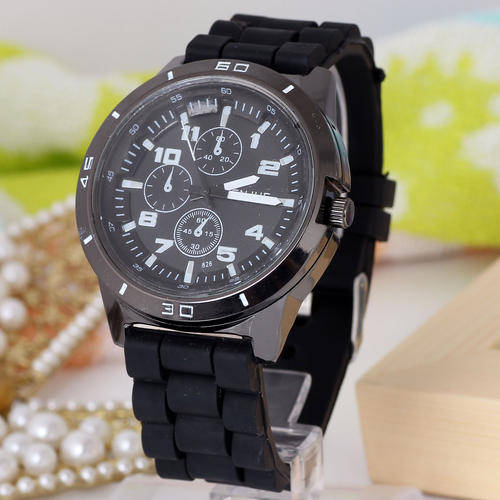 BLACK DIAL JELLY SILICONE BAND UNISEX QUARTZ WRIST WATCH
