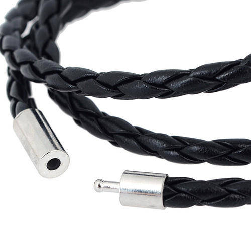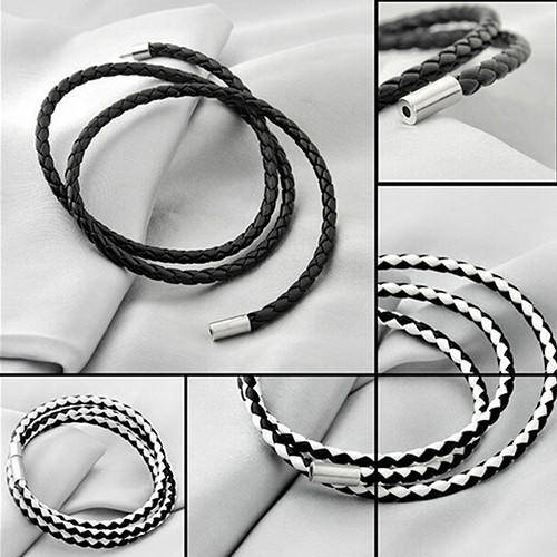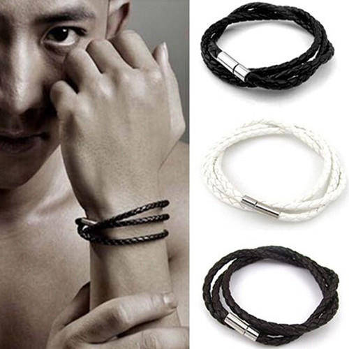 BLACK Faux Leather Interlaced Cuff Bangle Multilayer Wristband Bracelet