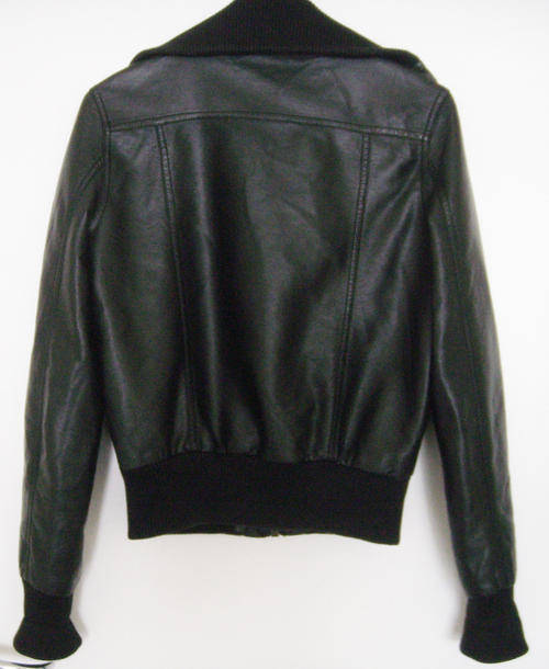 Black Faux Leather Bomber/Biker jacket with bronze zips and ribbed cuffs,