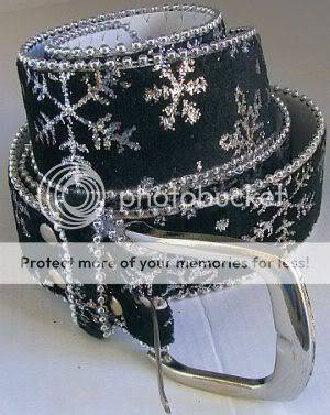 REALLY STUNNING BLACK GLITTER BELT EDGED WITH SILVER BEADS