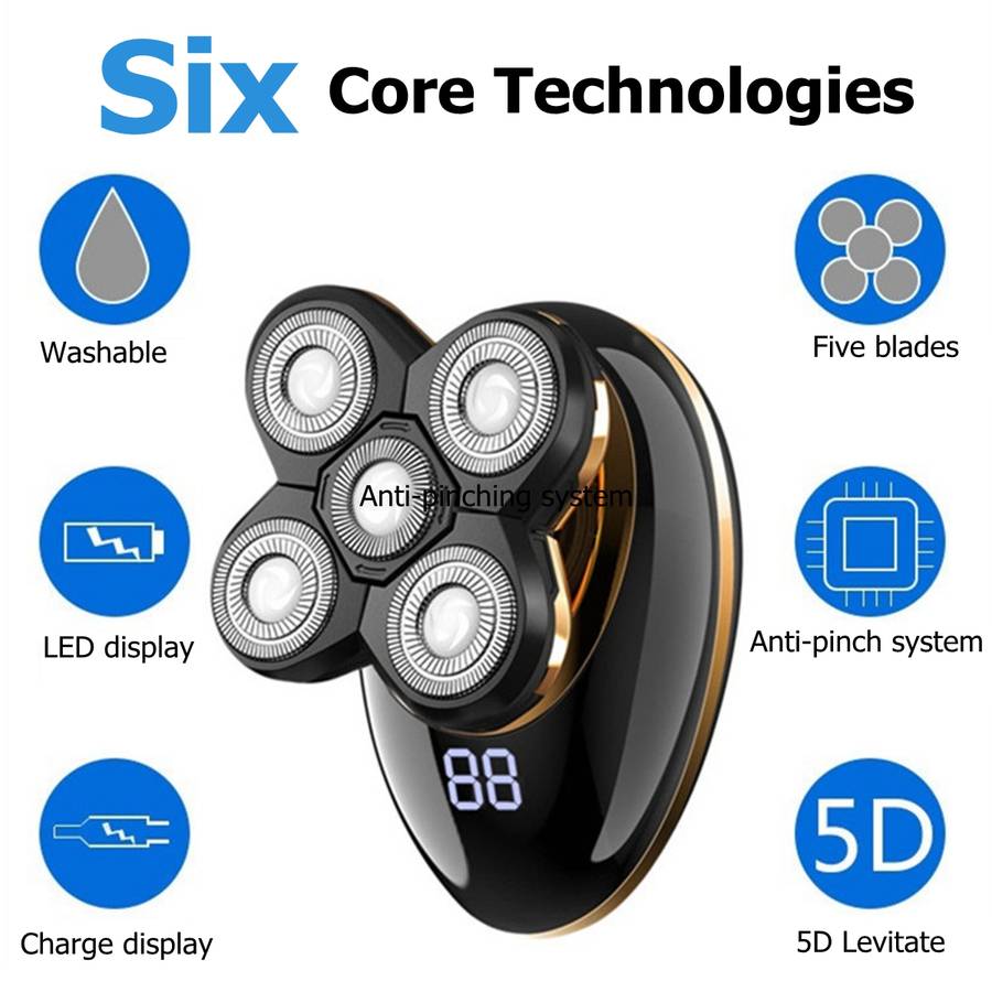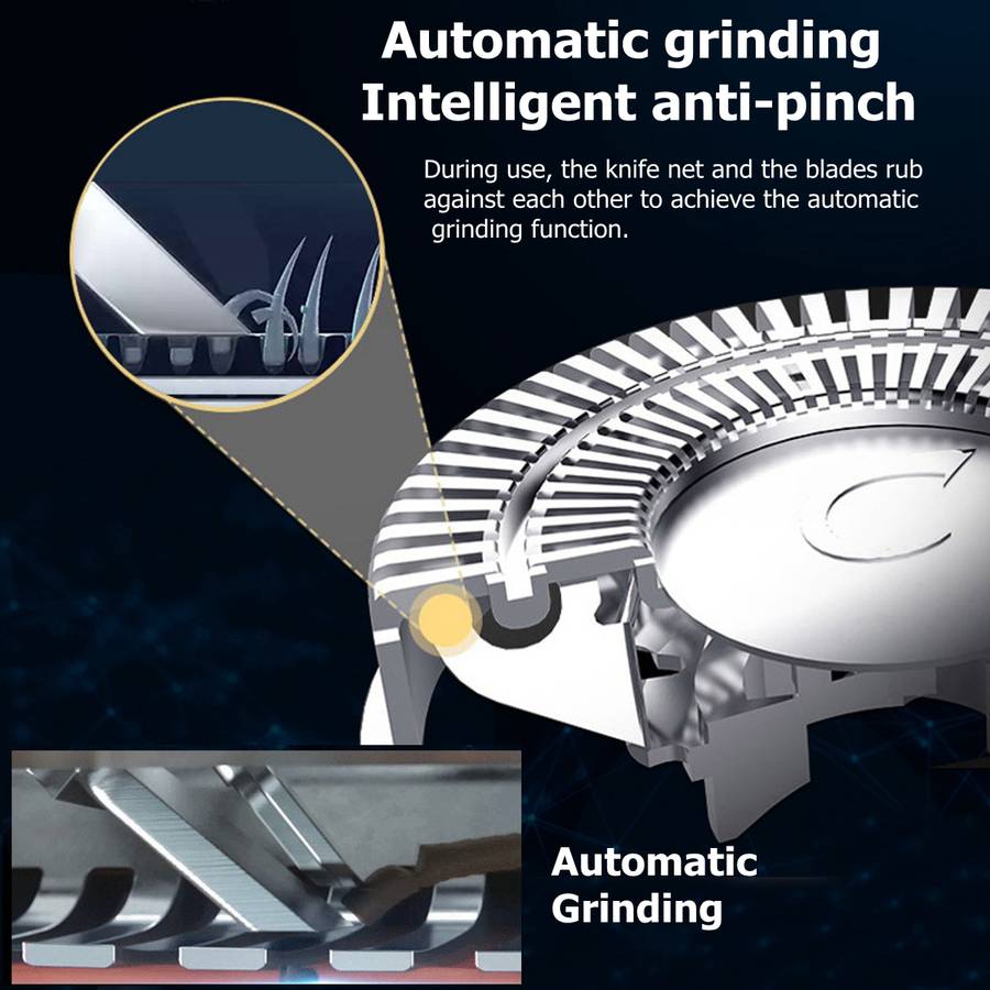 -Rotating 5D cutter head.Double ring independent floating blade. Smart floating system, 360 ° fit your face profile.