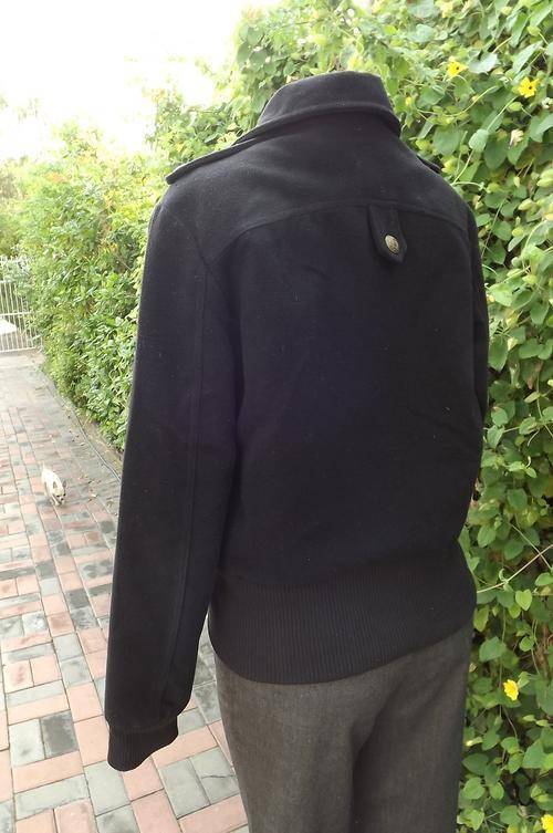 Black heavy brushed polyester lined jacket with zip-up front in size 40-42.Wide knitted ribbing and