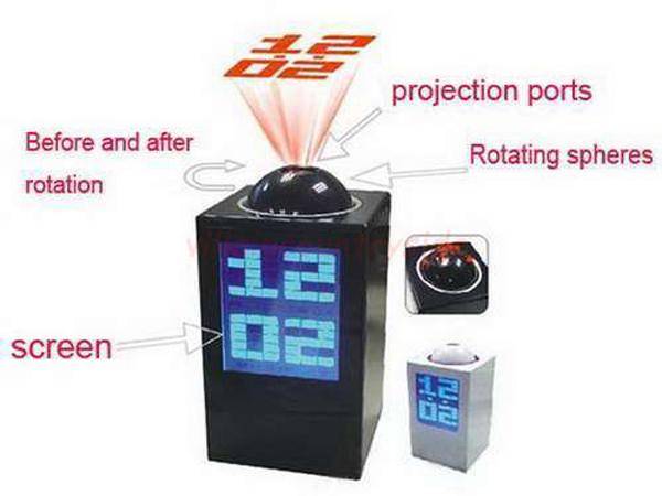 Projective display time, date, temperature by 180 degree rotating head.