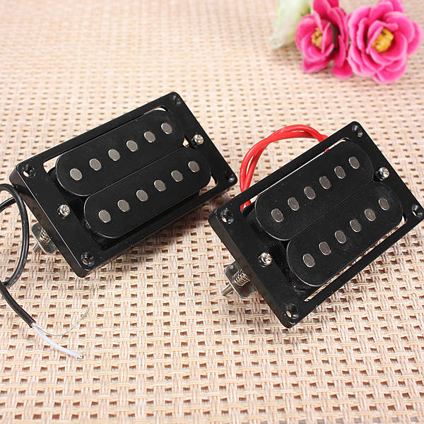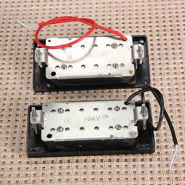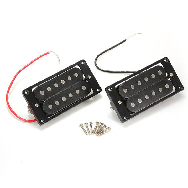 Black Humbucker Double Coil Electric Guitar Pickups Type:Pickup Color:Black Description: For Electric Bridge and Neck guitar Features Double Coil Electric Guitar Pickups These are excellent value LP alternative humbuckers Specifications: String space: 50/52mm The Resistance: 7.6 - 8k ohm, the magnecic the ferrite. Face Plate Dimensions: 9cm(L) 4.5cm (W) and 0.7cm (H) Pickup Dimensions: 6.8cm(L) 3.5cm (W) and 1.9cm (H) Package includes: 1 X Electric Guitar Pickups