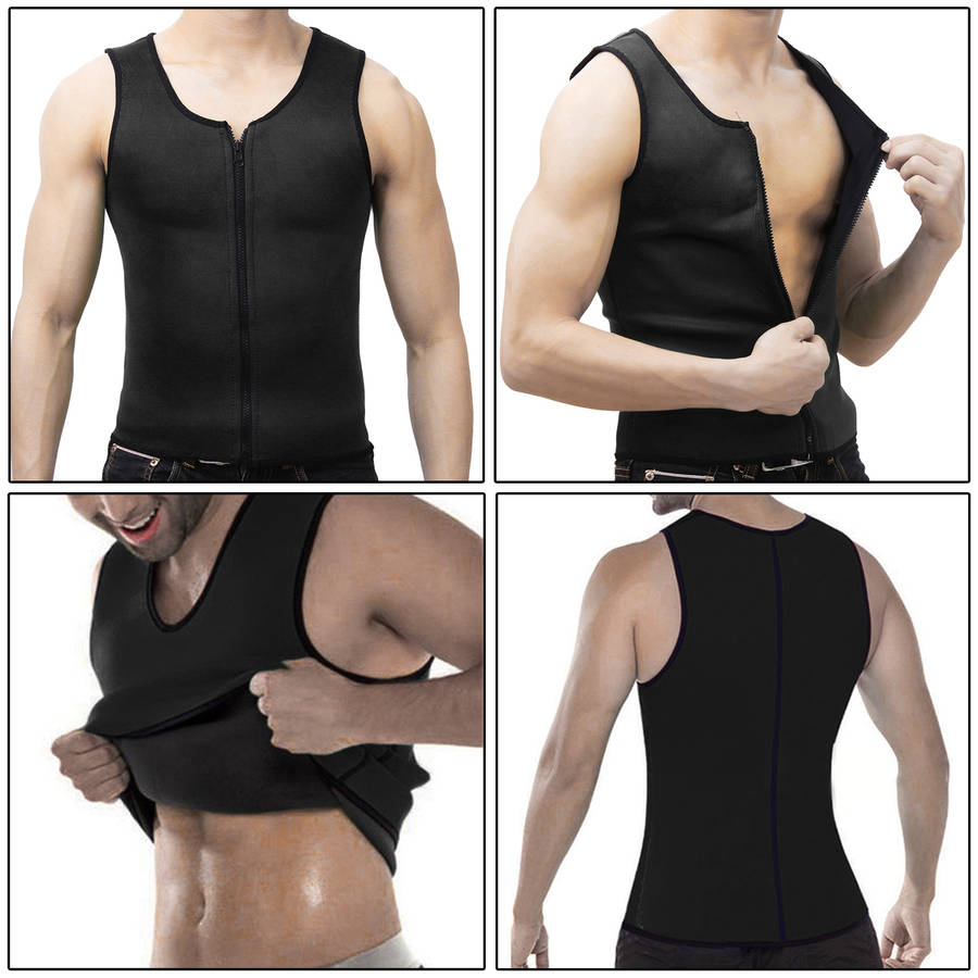 Black Men Slimming Vest Body Shaper Belly Wrap Abdomen Weight Loss Zipper Sauna